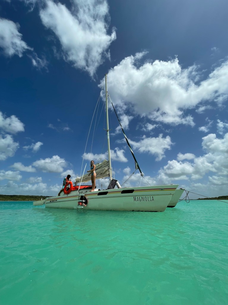 De volgende ochtend werden we weer om 6:00 wakker en besloten we een wandelingetje te maken naar het meer. Heel Bacalar sliep nog, we waren letterlijk de enigen op straat. Toen we terugkwamen hadden we nog wat tijd te doden tot het ontbijt dus besloten we weer even te sporten. Na een heerlijk ontbijtje vertrokken we met de andere gasten uit onze airbnb naar Club Naval waar op ons werd gewacht omdat we gingen zeilen!!! Vergezeld door drie Mexicaanse jongens vertrokken we met een catamaran het meer op en het was fan-tas-tisch! Het meer staat bekend om z’n zeven tinten blauw, die ontstaan door een samenspel van licht, diepte, water en sediment. Ik heb denk ik nog nooit zulk mooi water gezien, en dan ook nog eens zeilend, wat een sprookje. We hebben op twee plekken geankerd om lekker te zwemmen en de stromatolieten te bekijken. Toen was het helaas alweer tijd om terug te gaan, maar als we langer op het water hadden gezeten waren we levend gegrild dus in dat opzicht was het goed.