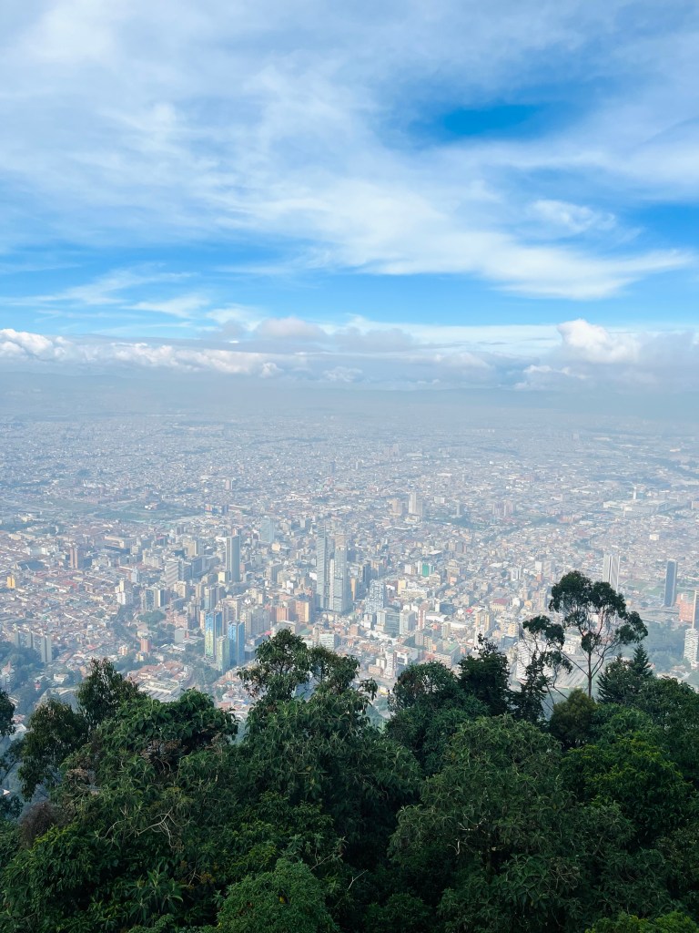 De volgende ochtend werden we dankzij onze jetlag al vroeg wakker, en het leek ons een uitstekend idee om Monserrate te beklimmen. Nu is het handig om te weten dat Bogotá op 2600 meter ligt en Monserrate op 3100 meter, na het eerste stukje wandelen (en een teleurstellende empañada) besloten we ons doel al snel bij te stellen: we gingen omhoog met de Teleférico (kabelbaan). Eenmaal bovenop de berg was het uitzicht waanzinnig: de stad is ENORM (> 11 miljoen inwoners). Niet veel later kwam Manuel de berg op rennen en besloot hij vrienden met ons te worden. Manuel is een Colombiaanse wiskundestudent die ons de halve dag mee op sleeptouw heeft genomen en graag wilde dat we overal foto’s van maakten (zoals de lama’s op Plaza Bolívar). We hebben Ajiaco (soort soep van aardappel, mais, kip en kappertjes) geluncht en zijn naar de enorme San Victorino markt geweest (waar we anders nooit waren gekomen). Daarna hebben we ook het Botero museum nog bezocht en toen was het toch echt tijd om afscheid van nuestro nuevo amigo te nemen. Helaas begon het keihard te regenen, maar dat bracht ons wel in de gelegenheid om even naar het plan voor de komende tijd te kijken. Simpel gezegd zullen we een rondje tegen de klok in maken, met als eerstvolgende bestemming Villa de Leyva!