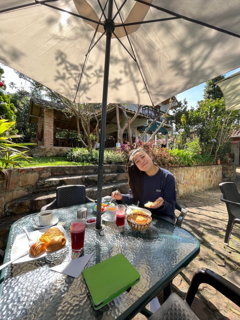 Na een paar drukke dagen in Bogotá was het tijd voor een ontspannen seniorenvakantie in het idyllische Villa de Leyva (een koloniaal dorp in de hooglanden zo’n 200 km ten noorden van Bogotá). We kwamen in het donker bij ons hostel aan en des te groter was de verrassing toen we de volgende ochtend zagen in wat voor paradijsje we terecht waren gekomen! We hebben de hele ochtend lekker gechilld en gelezen in de prachtige tuin en zijn ‘s middags even het schattige dorp in gegaan. We aten in het hostel en gingen lekker op tijd slapen in ons schattige kamertje met vide.