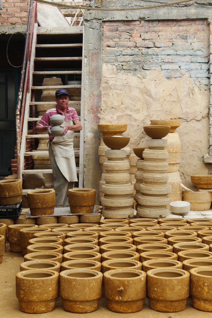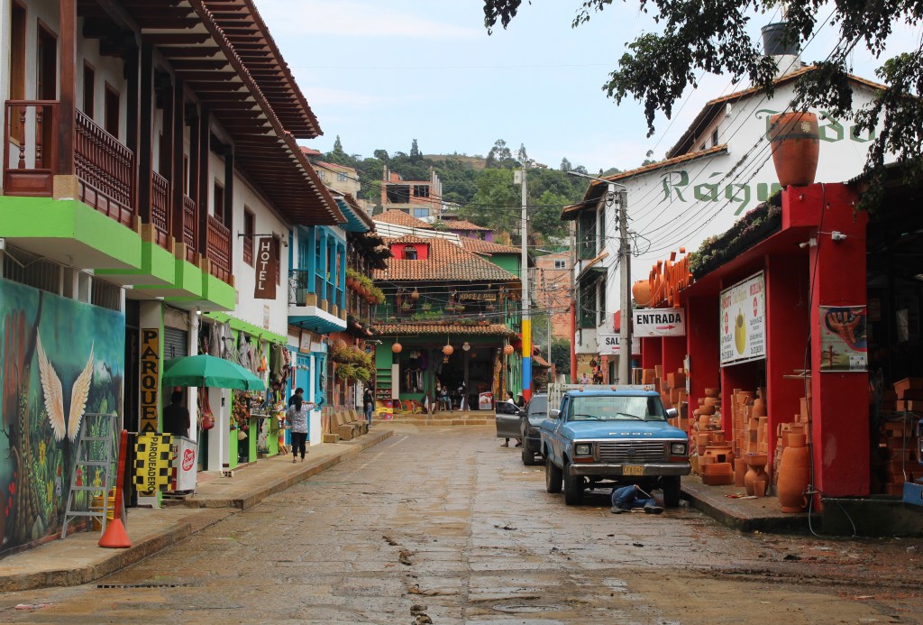 Na dit debacle namen we de taxi naar Ráquira, een nabijgelegen pottenbakkersdorpje. Elke muur/deur/kozijn heeft daar een andere kleur dus het was een bont geheel. We werden uitgenodigd in een pottenbakkerij waar een heel vriendelijke señor ons zeer passievol over zijn vak vertelde, (helaas was er voor ons in dit rappe Spaans geen touw aan vast te knopen, gewoon knikken en sí zeggen). Na twee uur hadden we Ráquira wel gezien en hebben we even zelf wat gekookt (zodat deze omaatjes nog wat groenten binnen krijgen), alvorens we op stok (of vide, net hoe je wil) gingen.