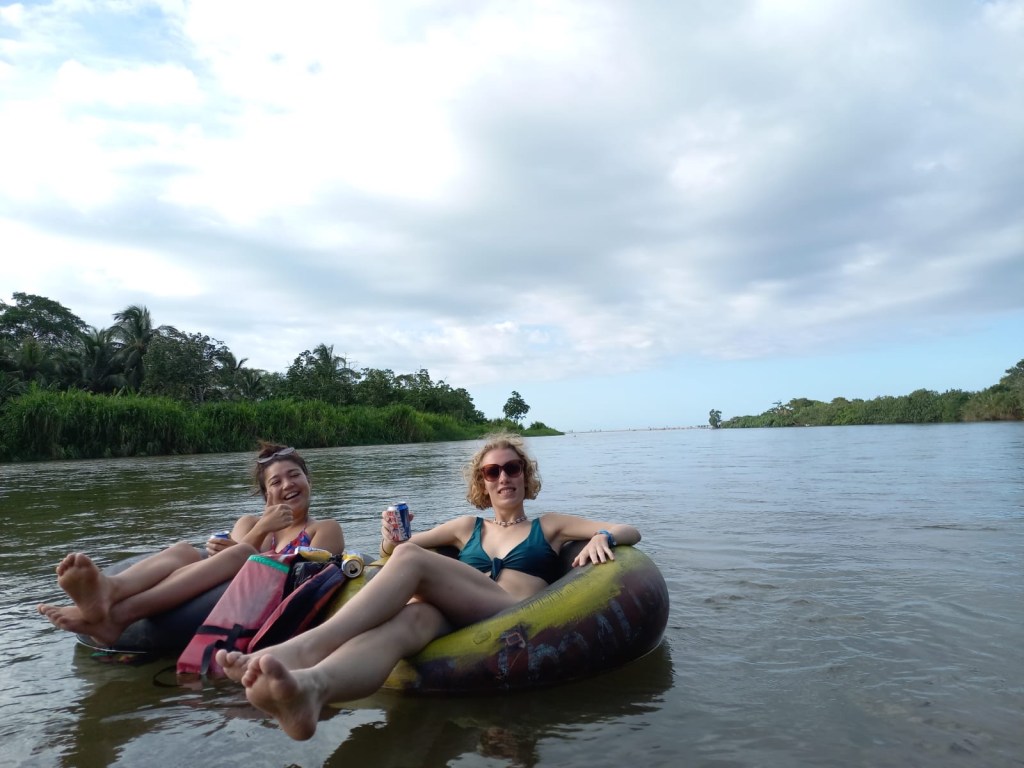 Omdat we nog een dag hadden voordat de Lost City Trek zou starten besloten we te gaan tuben op de río Palomino. Vanuit het eerder genoemde gebergte stromen allerlei rivieren met smeltwater de zee in en je kan je dus kilometerslang op een band laten meedrijven! Achterop de motor van onze gids ‘Sneijder’ (die mij nog een stukje wilden laten rijden, maar toen ik de motor drie keer liet afslaan begreep dat dat ‘m niet ging worden) reden we de jungle in, liepen we nog een stuk en begaven we ons vervolgens op de rivier. Het was echt adembenemend mooi, je drijft midden door de met regenwoud bedekte heuvels! We hebben zelfs nog aapjes gezien, en genoten van de reggaeton en ongemakkelijke vragen van Sneijder 😉