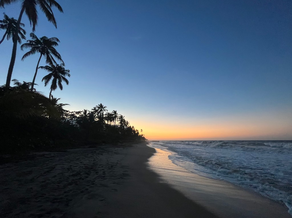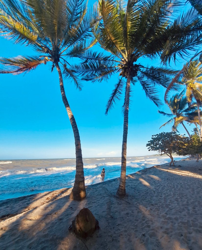 We wilden graag de Lost City Trek doen (hierover zo meer), helaas was ons tevergeefs beloofd dat dit geregeld zou worden dus waren we de volgende ochtend weer kwijt aan organiseren hiervan. Hoort er bij natuurlijk, maar het was wel een beetje irritant. Toen het gefixt was zijn we lekker aan het strand gaan liggen en hebben we nog een stuk langs de kust gewandeld. Het uitzicht was prachtig, want achter alle palmbomen beginnen de bergen van Sierra Nevada de Santa Marta (een kustgebergte met pieken tot 5775m!)