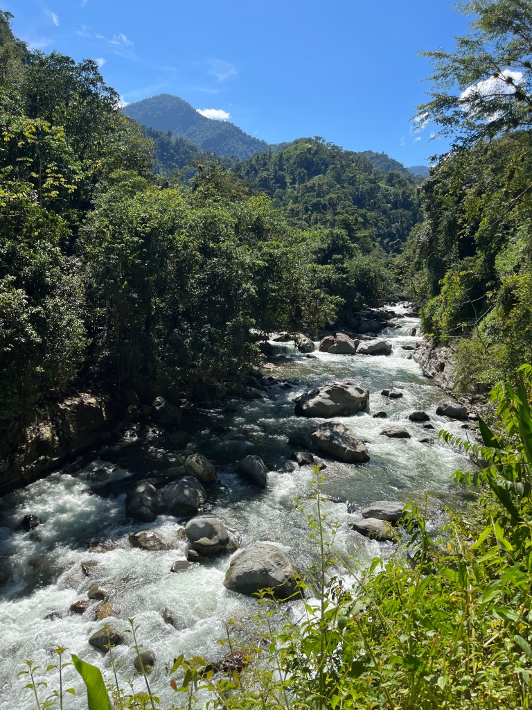 Omdat we nog een dag hadden voordat de Lost City Trek zou starten besloten we te gaan tuben op de río Palomino. Vanuit het eerder genoemde gebergte stromen allerlei rivieren met smeltwater de zee in en je kan je dus kilometerslang op een band laten meedrijven! Achterop de motor van onze gids ‘Sneijder’ (die mij nog een stukje wilden laten rijden, maar toen ik de motor drie keer liet afslaan begreep dat dat ‘m niet ging worden) reden we de jungle in, liepen we nog een stuk en begaven we ons vervolgens op de rivier. Het was echt adembenemend mooi, je drijft midden door de met regenwoud bedekte heuvels! We hebben zelfs nog aapjes gezien, en genoten van de reggaeton en ongemakkelijke vragen van Sneijder 😉