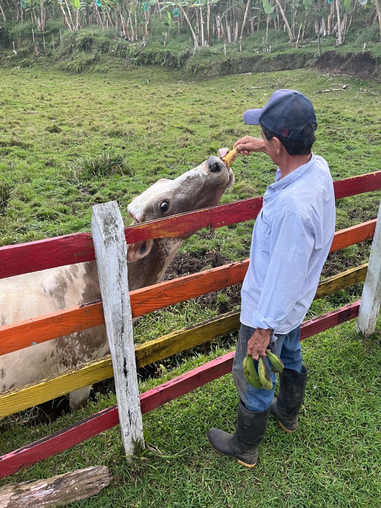 De volgende dag zijn we ‘s middags naar koffiefinca Los Angelos gegaan. De tuktukrit er naar toe was al spectaculair en de rondleiding van señor Giraldo en zijn familie was geweldig. We werden verwelkomd met diverse kopjes koffie en in het Spaans (maar heel langzaam) legde hij het proces van plant tot kopje koffie uit. Hij nam ons mee de plantage op, liet zien hoe je de koffiebessen plukt, hoe ze gesorteerd en gedroogd worden, hoe ze vervolgens gepeld en geroosterd worden en tot slot worden vermalen om er daadwerkelijk koffie van te kunnen zetten. Ook kregen we een cappuccino met melk van hun eigen koe Paula, Paula eet papaja’s en bananen waardoor de melk zoet was van zichzelf! Inmiddels hebben ze dit bedrijf al vijf generaties en met een grote glimlach en hartkloppingen van de cafeïne keerden we een paar uur later terug naar Jardín waar we weer bij de Italiaan neerstreken.