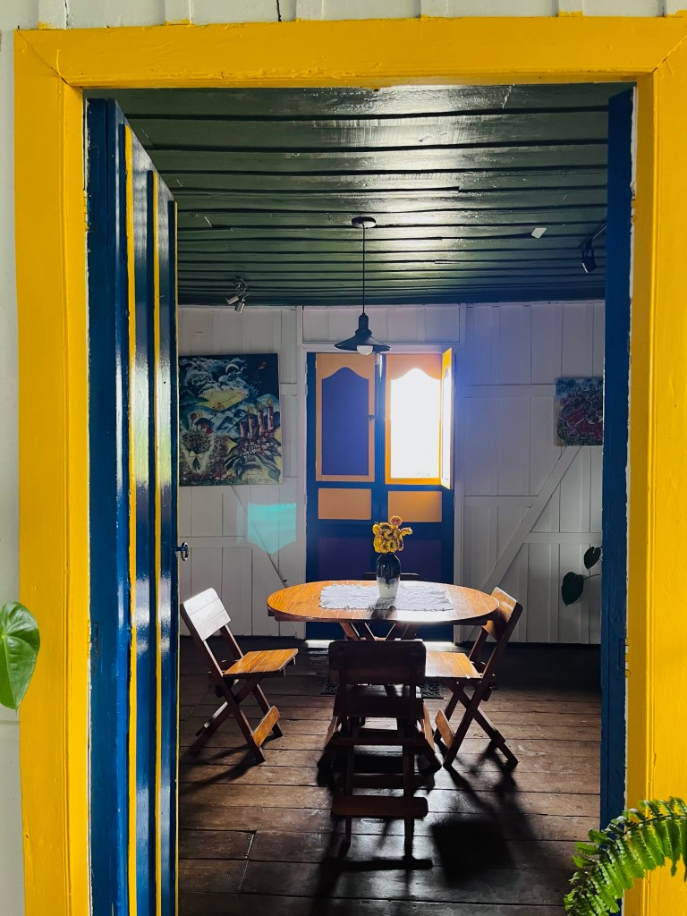 We sliepen in een super schattig houten huis vol vrolijke kunst. Na een koude nacht (het is hier zo’n 12°C ‘s nachts) hebben we heerlijk ontbeten met wentelteefjes en even bijgekletst met Erik. Toen we terugkwamen in onze airbnb bleek het dak de regen niet meer aan te kunnen: het water liep onze kamer in. Onze host gaf een dweil en zei: ‘yeah it normally doesn’t rain so much’. Ze begreep niet waarom we een bak en handdoek wilden hebben en in plaats van ons te helpen zei ze meteen dat we maar wat anders moesten boeken. Dit viel natuurlijk niet helemaal in goede aarde en bovendien konden we niet echt weg aangezien alles vol zat vanwege het hoofdseizoen. 1) Het is zomervakantie hier, 2) vanwege drie koningen (vrijdag 6 januari) had iedereen maandag 9 januari een vrije dag?! en 3) blijkbaar zijn en van 2 tot 9 januari elk jaar grote feesten in Salento, waar 150.000 man op afkomt. Gelukkig stopte de regen na een tijdje, en daarmee ook de lekkage. ‘s Avonds hebben we nog even sfeer geproefd bij het dorpsfeest, hilarisch! Los Inquietos traden op en iedereen stond met een fles rum of aguardiente in de hand. Zoek maar even op op spotify, dit soort muziek hebben we dus elke avond tot diep in de nacht moeten aanhoren…