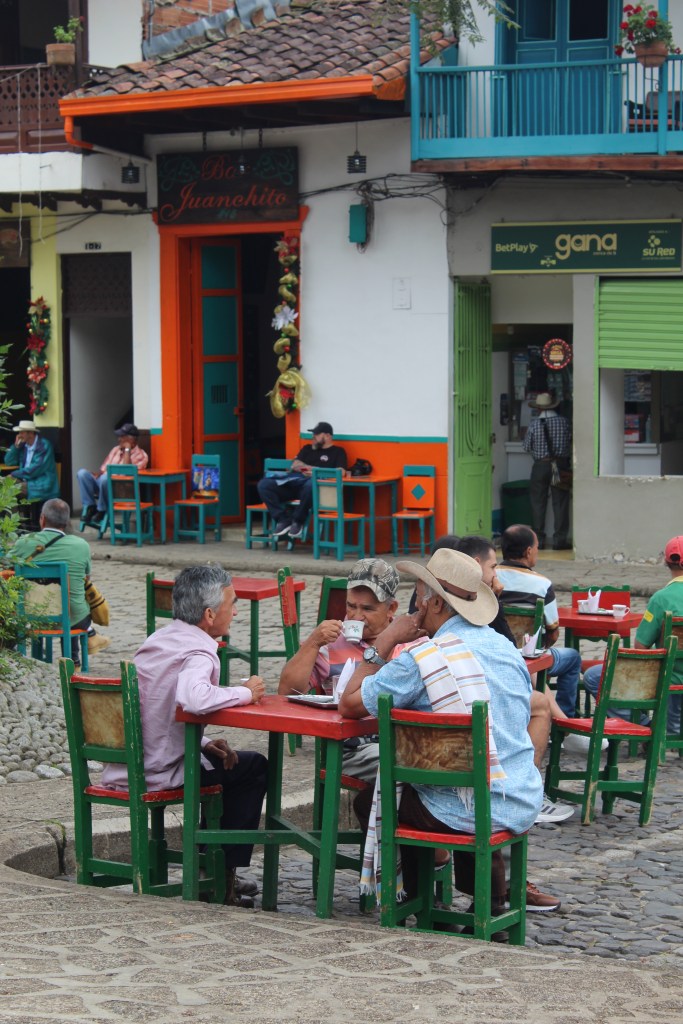 Jardín, tuin in het Spaans, doet haar naam eer aan. Het is een door bergtoppen omgeven Andes dorpje op 2000m hoogte in de koffieregio van Colombia (Eje Cafetero), waar de tijd stil lijkt te staan. Het centrale plein zit de hele dag vol met mensen die kopjes koffie drinken en spelletjes spelen en de mannen rijden met cowboyhoeden op op paarden door de straten. Ik vind Jardín misschien wel de fijnste plek waar we tot nu toe geweest zijn!