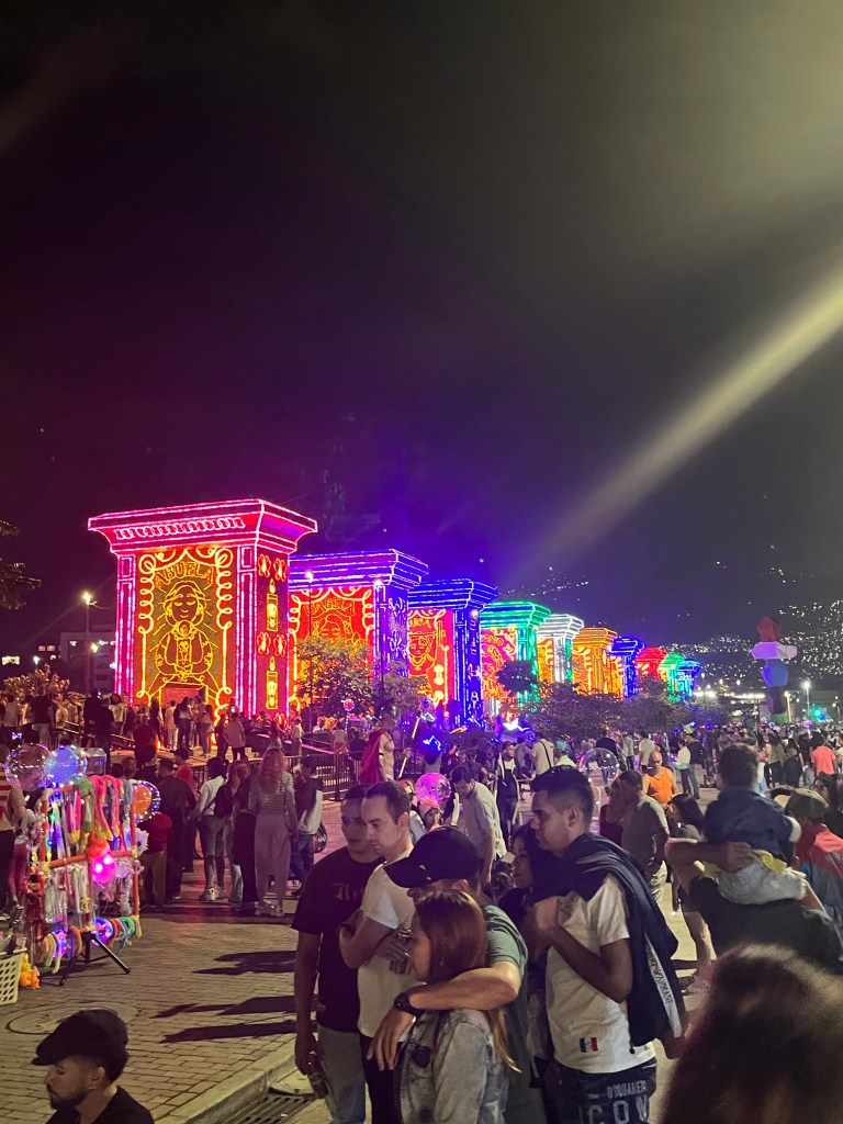 Om het weekend in te luiden zijn we met een groepje naar de kerstlichtjes langs de rivier van Medellín gaan kijken. Kerstlichtjes zijn een big deal in Colombia en Medellín en Cali voeren hier zelfs jaarlijks een strijd om. Dit jaar was het thema Disney’s encanto en we hebben kilometers lang van de meest kleurrijke en hysterische lichtjes rondom de rivier mogen genieten, samen met duuuuiiiiizenden andere mensen, wat een chaos en gezelligheid!