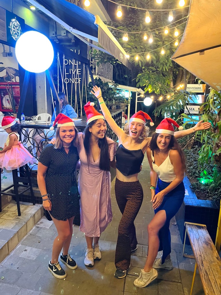 Op 24 december hebben we lekker uitgeslapen en daarna ben ik met Daphne en Jin met de metro naar Parque Berrio, een halte midden in het centrum, gegaan. Zo’n enorme drukte en chaos, geweldig en verschrikkelijk tegelijkertijd! We hebben een paar pleinen, de kathedraal, het paleis van cultuur bekeken en ik kan echt door en door genieten als er dan midden op een plein een paar mensen muziek maken en alle omstanders met elkaar staan te dansen. Na een tijdje was het wel weer mooi geweest, want ondanks de gezelligheid moet je op dit soort plekken continu opletten en als het ware ‘aan’ staan en, belangrijker nog, we moesten ons gaan optutten voor het kerstdiner! Samen met de lieve meiden die we deze week hebben leren kennen, Iris, Martine en Daphne, hebben ons zo goed en kwaad als het ging (shoutout naar de glitters van Daphne) opgetut en onze minst backpackerige-outfit maar eens tevoorschijn getoverd. We hebben een lekker diner gegeten bij Los Patios en daarna tot diep in de nacht gefeest, het was een erg leuke avond! Op eerste kerstdag hebben we gebruncht (ik kwam daar nog een bekende uit Groningen tegen, hoe toevallig!) en verder vooral lekker tranquilo gedaan..