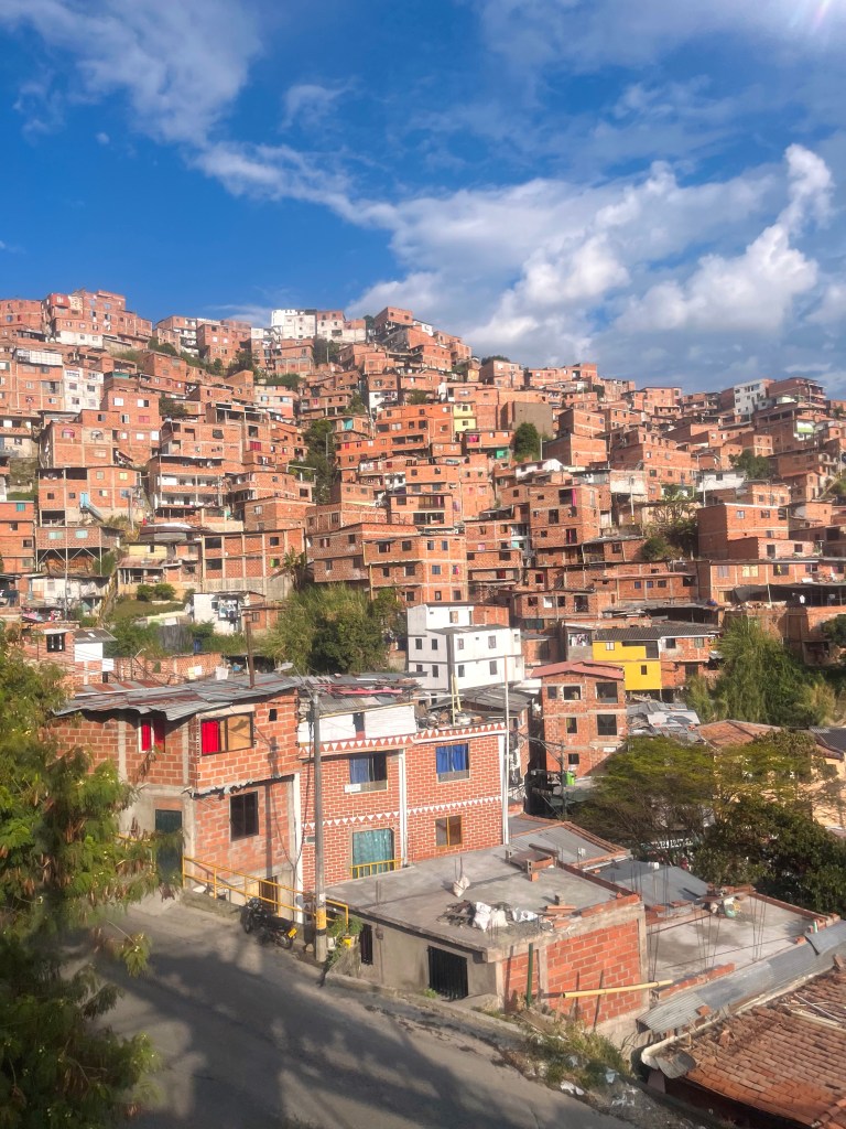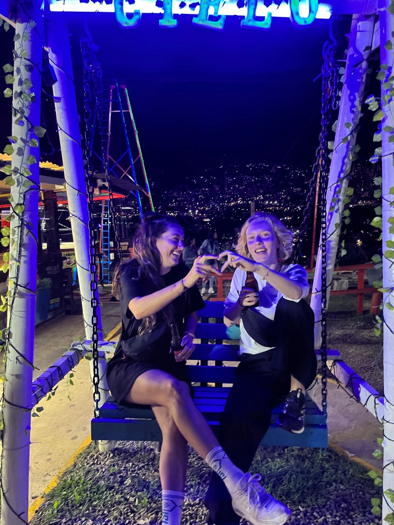 Helaas had ik niet meer voldoende tijd om ook nog met de kabelbaan te gaan en moest ik me haasten om op tijd bij mijn les te komen (niet gelukt; ik me uitgebreid verontschuldigen en kreeg als antwoord: ‘don’t worry, this is Colombia’). ‘s Avonds zijn Iris en ik met de taalschool naar een uitzichtspunt gegaan, mirador del cielo. Het was echt sprookjesachtig om vanaf de heuvels naar alle lichtjes van Medellín te kijken! De volgende dag ben ik na mijn les weer teruggegaan naar San Javier en alsnog met de kabelbaan gegaan. De kabelbanen zijn hier onderdeel van het metronetwerk en gebouwd om de wijken in de heuvels ook goed met de stad te verbinden. Het uitzicht vanuit de kabelbanen is echt waanzinnig, Medellín bleef me maar verbazen. Op de terugweg zat ik met een Colombiaanse familie in het gondeltje en een van de zoons heeft de hele metro terugrit met me gekletst. Super leuk om te merken dat een gesprekje in het Spaans al best lukt!