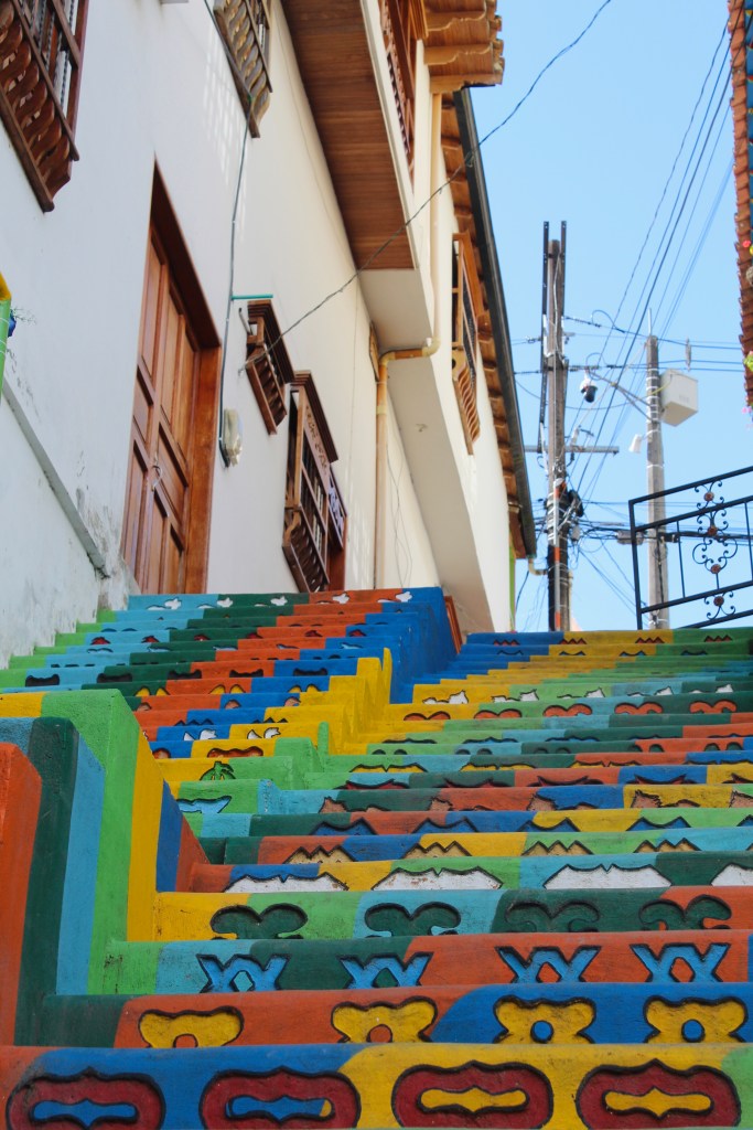Als laatste activiteit vanuit Medellín zijn we nog naar het dorpje Guatapé gegaan. Voor het gemak gingen we met een tour en de tourguide nam zijn taak zeer serieus. De eerste stop was bij een enorme granietkoepel genaamd El Peñon de Guatepé. Met trappen kan je deze rots op en vanaf daar heb je een geweldig uitzicht over het omliggende stuwmeer. Vervolgens reden we door naar Guatapé waar lunchten en een boottochtje over het meer deden. Tot slot kregen we een korte rondleiding door het dorpje en was er nog even tijd om zelf rond te lopen. Guatapé is een schattig, kleurrijk dorpje maar ook een toeristisch circus. Leuk om even gezien te hebben, maar na Villa de Leyva, Barichara en Guane niet mijn favoriet. ‘s Avonds hebben we afscheid genomen van Iris, want de volgende dag reisden we door naar Jardín!