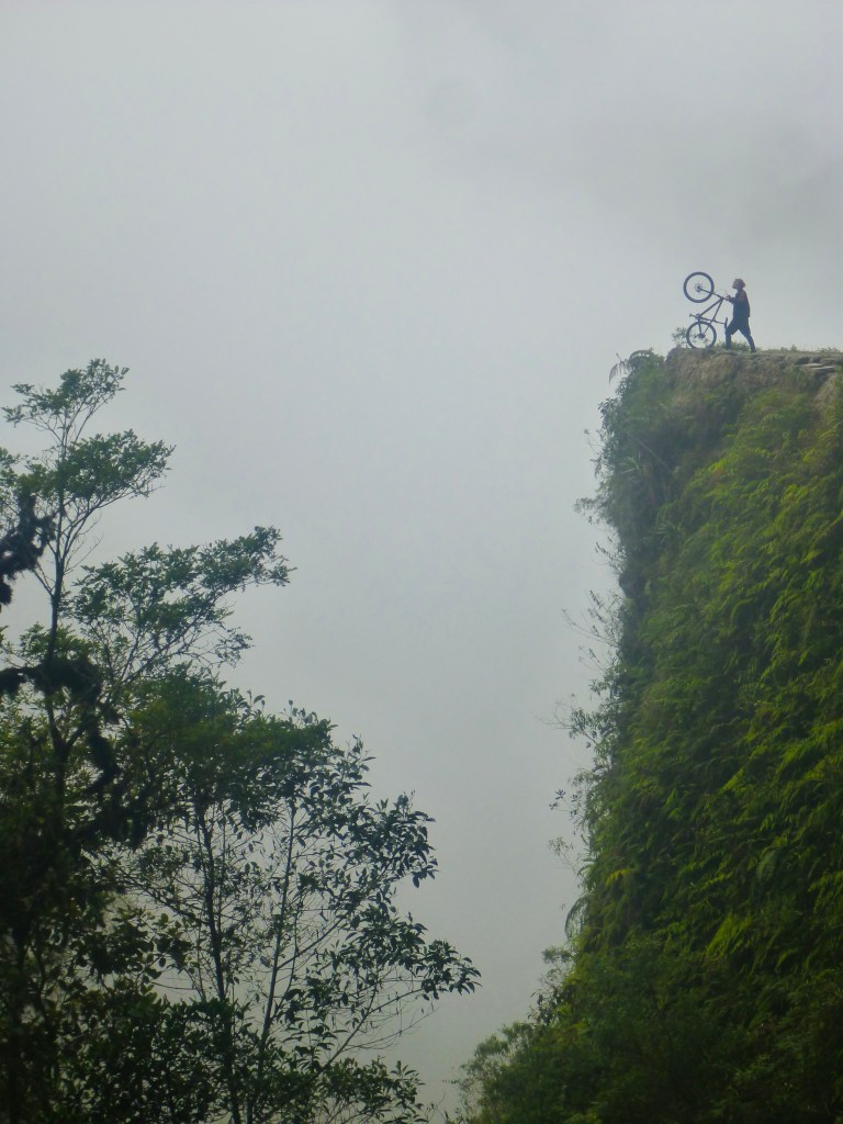 Op mijn laatste dag in La Paz ging ik North Yungas Road, oftewel Death Road fietsen. Jarenlang was dit een van de gevaarlijkste wegen ter wereld maar sinds de komst van een nieuwe weg is er nauwelijks nog verkeer en kan je 60km naar beneden fietsen door de meest geweldige landschappen. Met een busje vertrokken we naar het startpunt van de tocht op 4700m waar we beschermende pakken, helmen en natuurlijk onze fietsen kregen. De eerste 20km waren over een geasfalteerde weg en het uitzicht was waanzinnig, echt nog veel mooier dan ik had verwacht! Vervolgens moesten we een klein stukje verder met de bus en begonnen we aan het echte werk; het onverharde deel. Door de mist konden we aan het begin niet zien hoe diep de afgronden naast ons waren, maar de vele kruisjes langs de weg maakten wel duidelijk dat je hier geen fouten wilde maken. Na zo’n 30km langs afgronden, jungle, watervallen en riviertjes moesten we helaas stoppen omdat er meerdere landslides waren geweest die het laatste deel van de weg onbegaanbaar maakten (maar om eerlijk te zijn was ik zo verkrampt dat het wel prima was). We lunchten nog ergens en reden toen moe maar voldaan terug naar La Paz. Helaas voelde ik me ‘s avonds steeds minder lekker, misschien was 4700m op dag drie wat veel van het goede. Op tijd naar bed want de volgende dag ging ik door naar Isla del Sol!