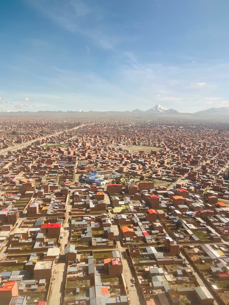 Op 27 februari bracht opa me naar Schiphol waar ik met wat weemoed opnieuw afscheid nam van het kikkerlandje. Een paar tranen en videobelletje met Annie en Leen verder kon ik er weer tegenaan en door de vermoeidheid sliep ik bijna de hele vluchten. Tijdens mijn overstap op Santa Cruz (Bolivia) kon ik mooi even pinnen en een simkaartje regelen en toen ik na de meest prachtige vlucht ooit in La Paz aankwam was ik binnen een uurtje in m’n hostel.