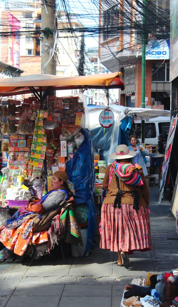 Na me even te hebben opgefrist besloot ik op pad te gaan en wauw, wat een indrukwekkende en hectische stad is La Paz! Het leek een soort combinatie van Medellín (Colombia) en Kathmandu (Nepal). Overal kleine marktkraampjes, een komen en gaan van mensen en verkeer, op elke straathoek een Cholita (dame in klederdracht) en boven je hoofd vliegen de verschillende lijnen van het gondelsysteem rond.